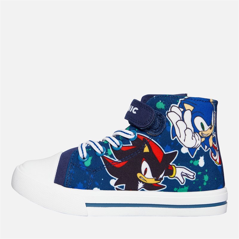 - Sonic Kids velcro hi top canvas trainers with side zip fastening.