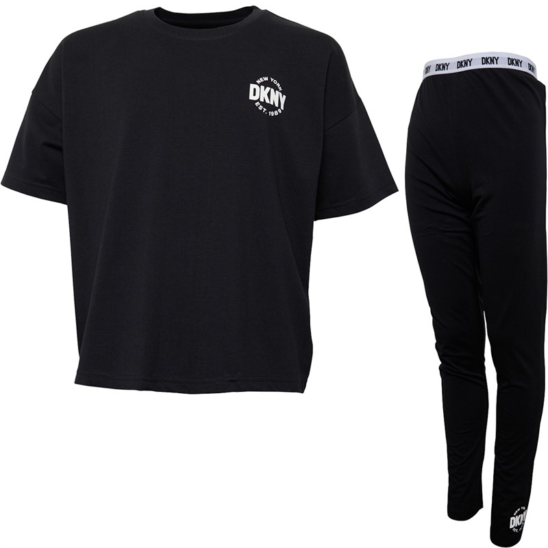 - DKNY Kids short sleeve top and trousers two piece pyjama set.