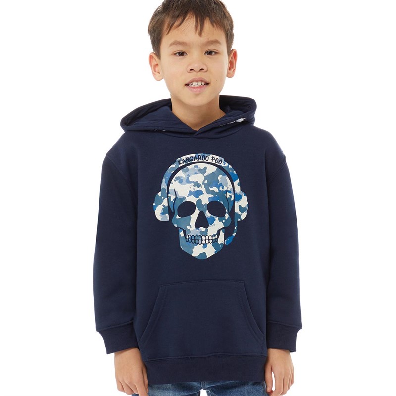 Kangaroo Poo Kids Camo Skull Hoodies Navy