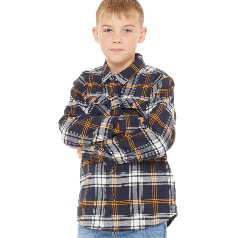 Kangaroo Poo Boys Checked Flannel Long Sleeve Shirt Navy