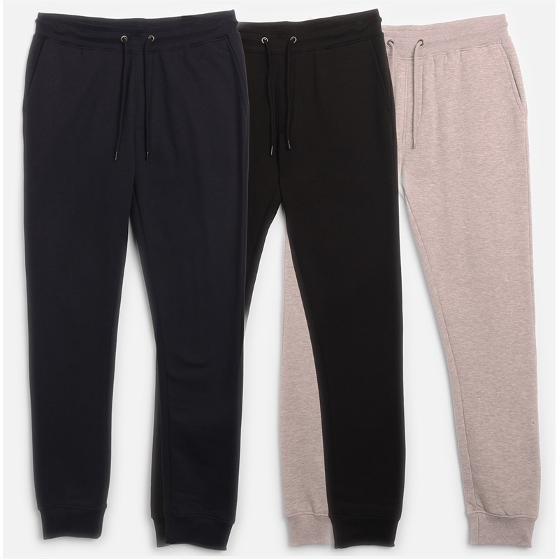 Kangaroo Poo Mens Three Pack Regular Fit Cuffed Fleece Joggers Black/Grey Marl/Navy