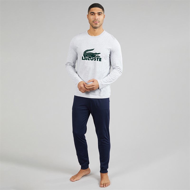 Lacoste Mens Velvet Logo Long Pyjama Set Blue/Grey/Green