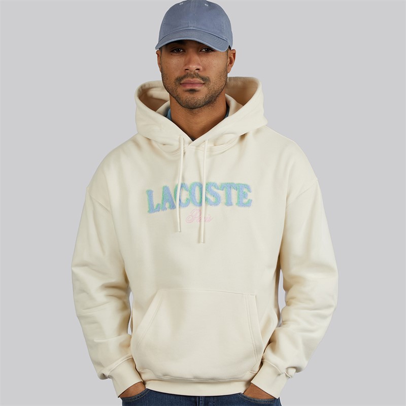 Lacoste Mens Loose Fit Embroidered Hoodie Ecru White