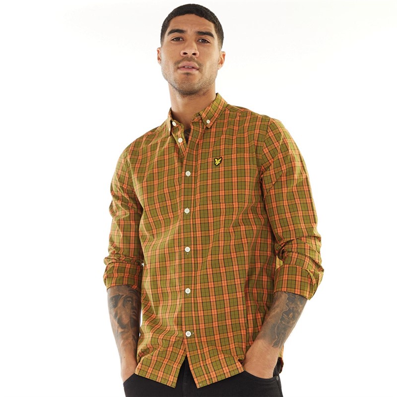 Lyle And Scott Vintage Mens Check Poplin Long Sleeve Shirt Victory Orange/Olive