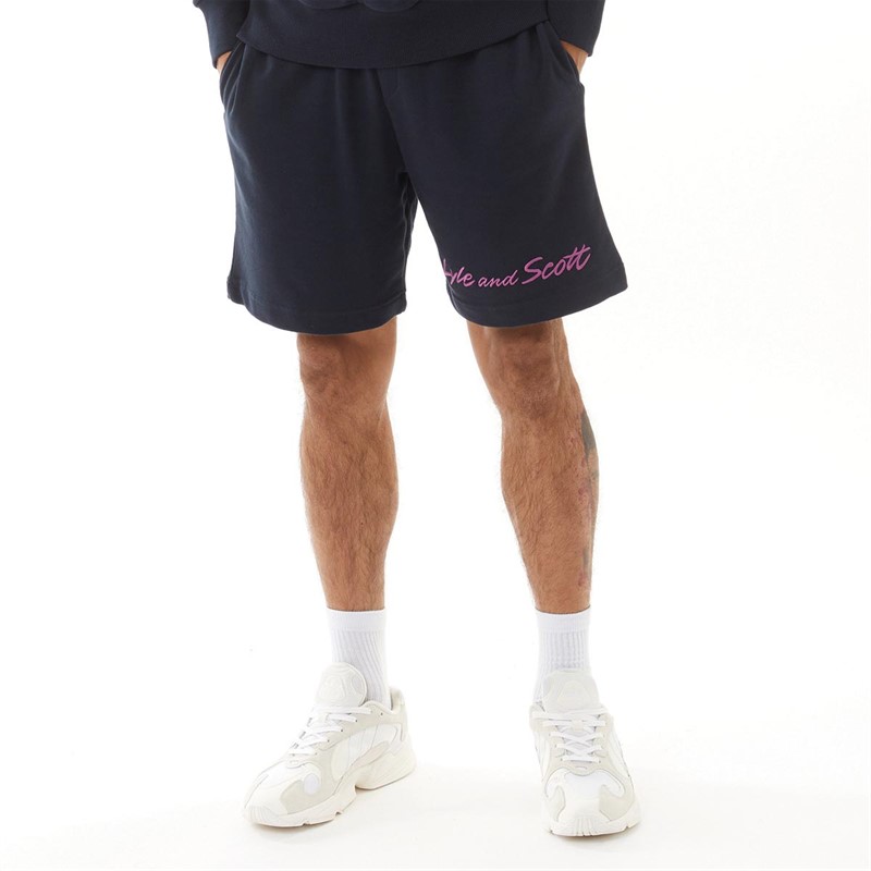 Lyle And Scott Vintage Mens Script Sweat Shorts Dark Navy/Lovecraft