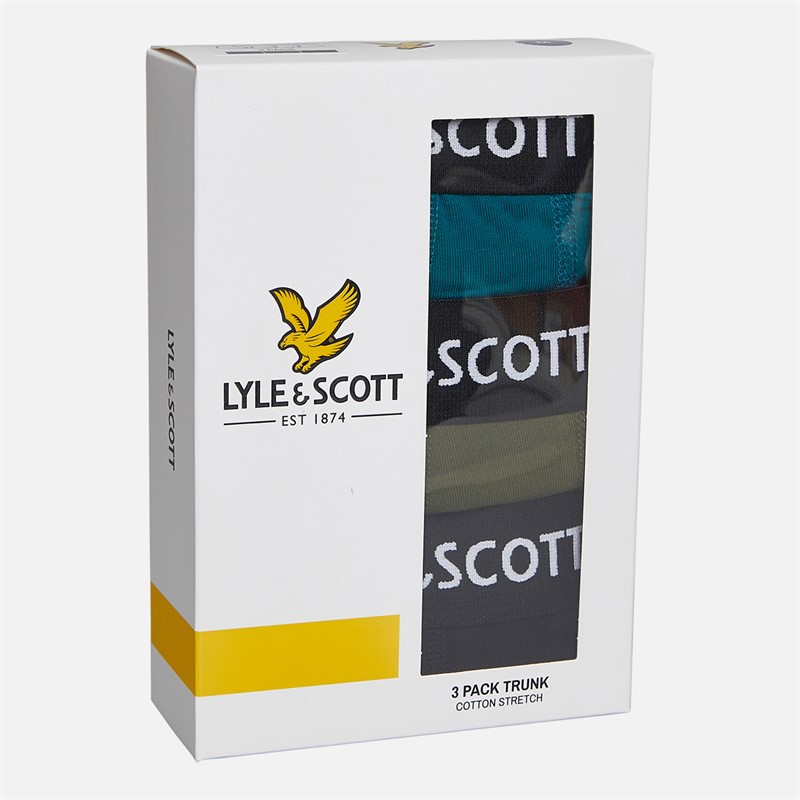 Lyle And Scott Vintage Mens Devon Three Pack Boxer Trunks Deep Lagoon/Beetle/Black