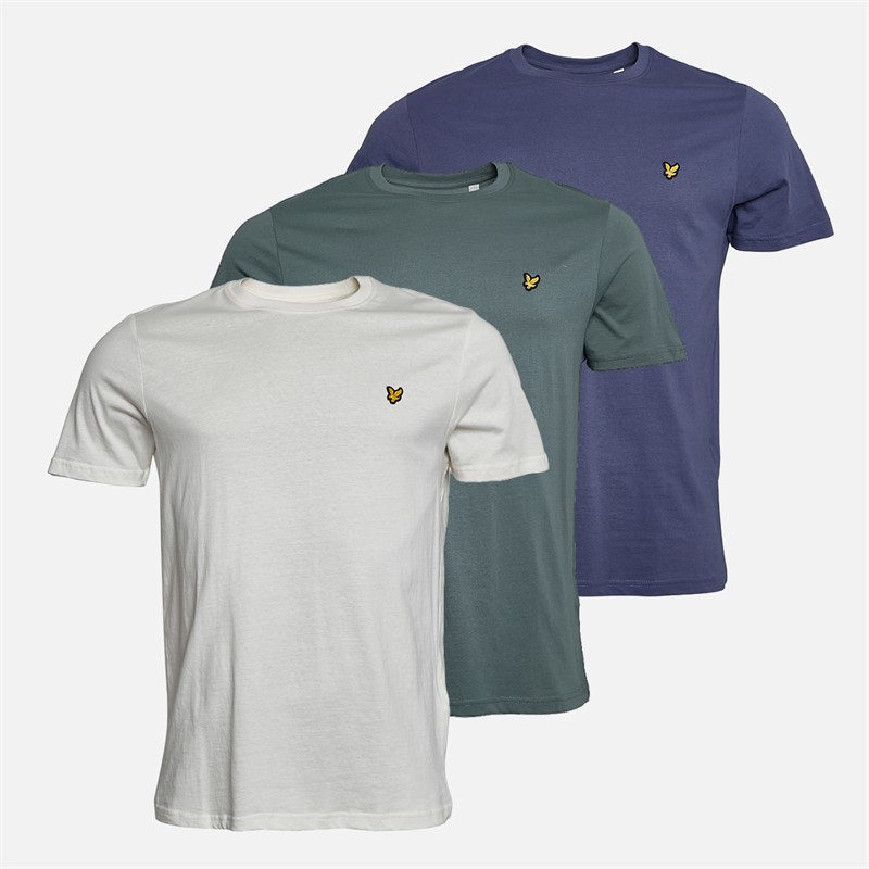 Lyle And Scott Vintage Mens Three Pack Lightweight T-Shirts Chalk/Cool Indigo/Green Mercurial
