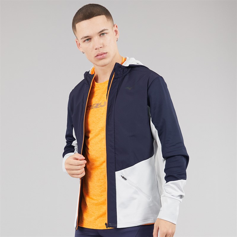 Mizuno Mens Active Warmalite Hybrid Running Jacket Baritone Blue