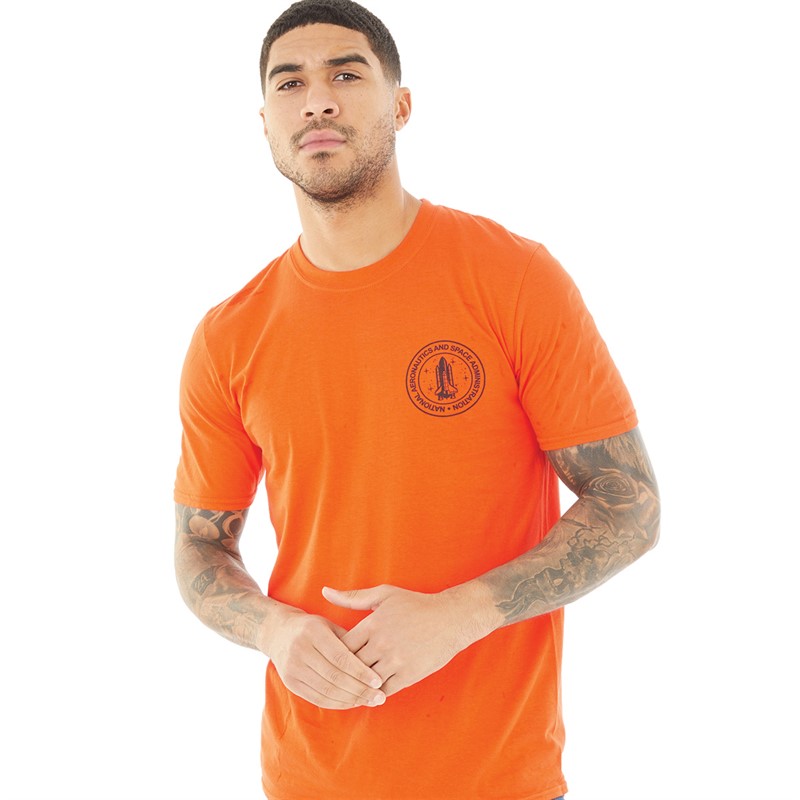 - NASA short sleeve crew neck t-shirt. Our model is 6'2'' with a 38'' chest and wears a size M.
