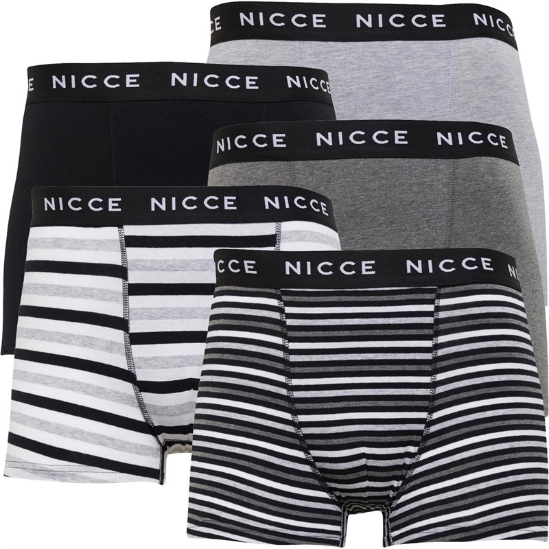 NICCE Mens Izzard Five Pack Boxers Black Stripe/Charcoal Marl/Stripe/Black/Grey Marl