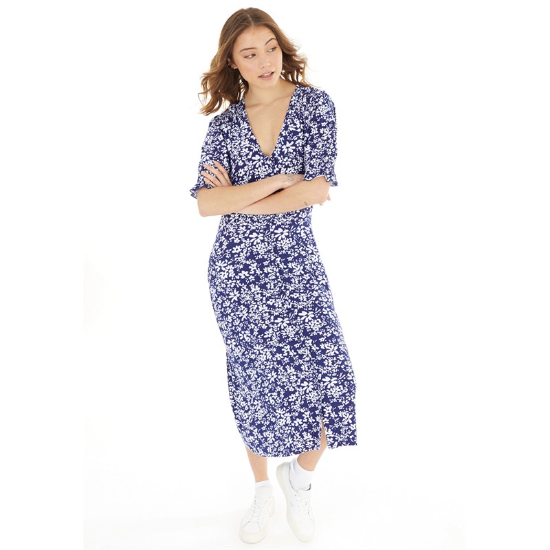 French Connection Womens Florale Button-Thru Midi Dress Dark Navy/White