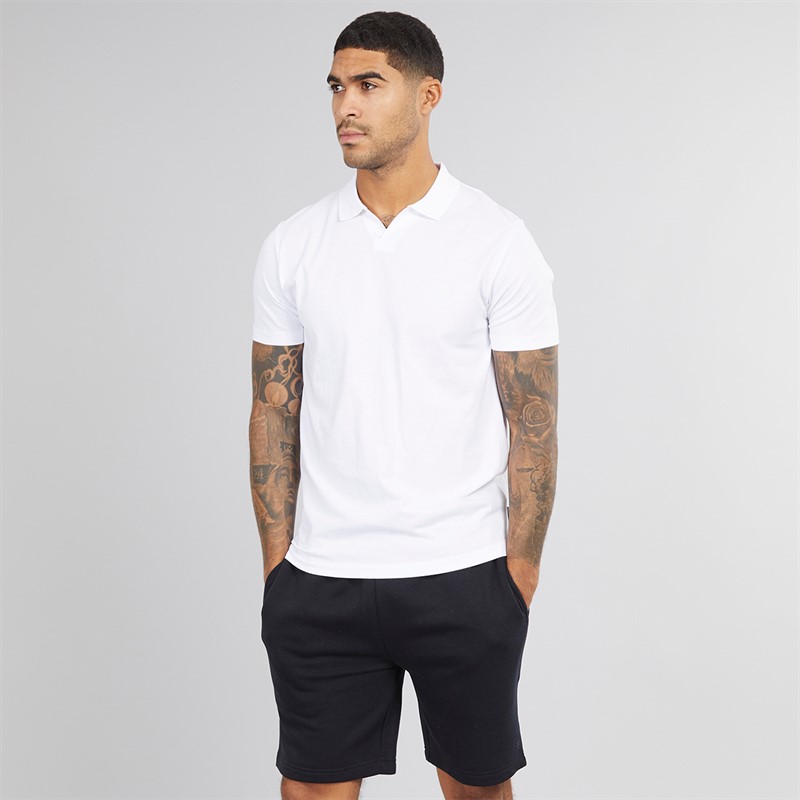 - French Connection short sleeve jersey polo and brushback fleece shorts two piece co-ord set.
