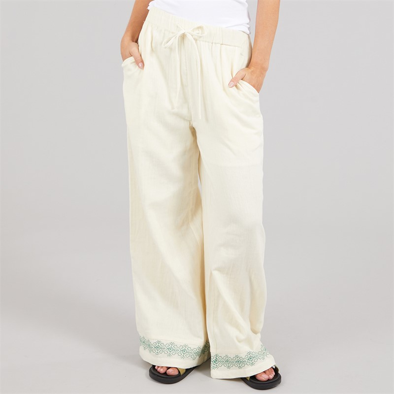 Native Youth Womens Embroidered Wide Leg Trousers Stone