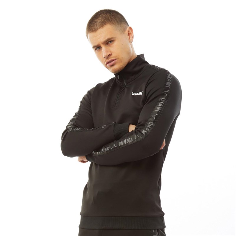 OKAMI Sport Mens Cooldown 1/4 Zip Taped Track Top Black