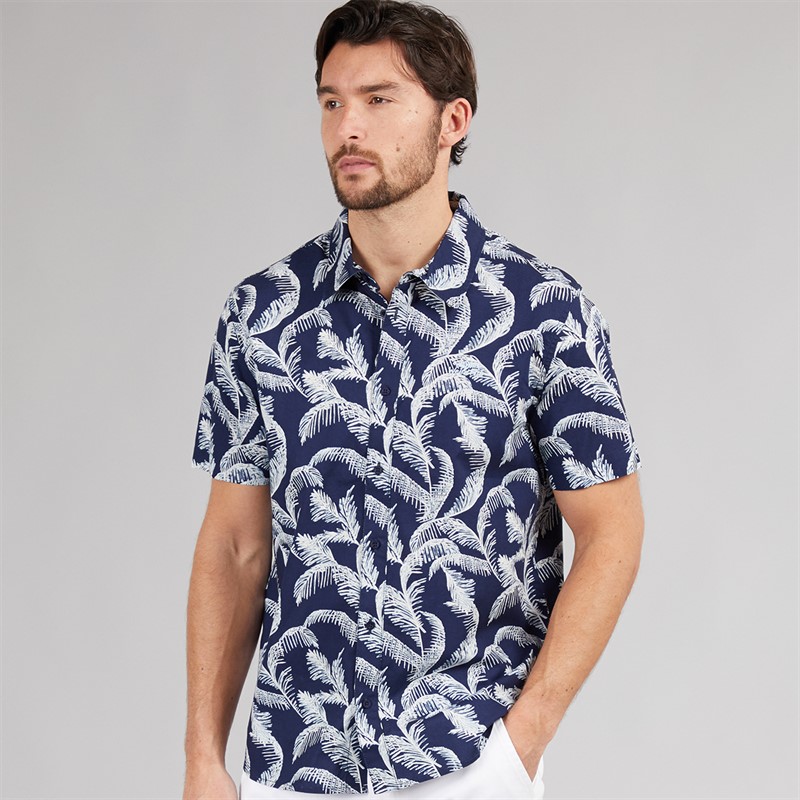 Weird Fish Mens Rafe Short Sleeve Printed Shirt Dark Blue