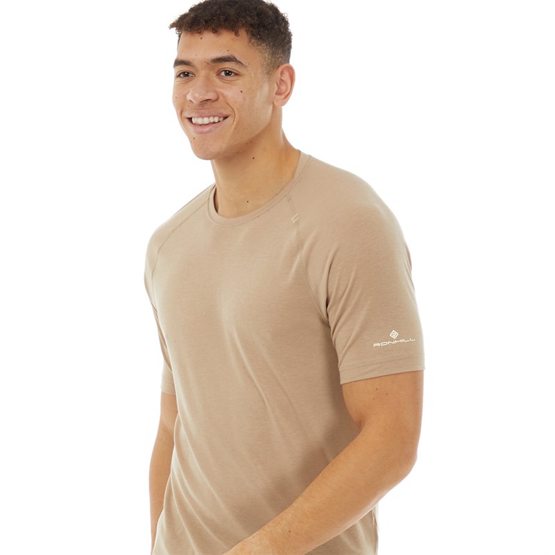 Ron Hill Mens Life Tencel Running Top Latte Marl/Vanilla