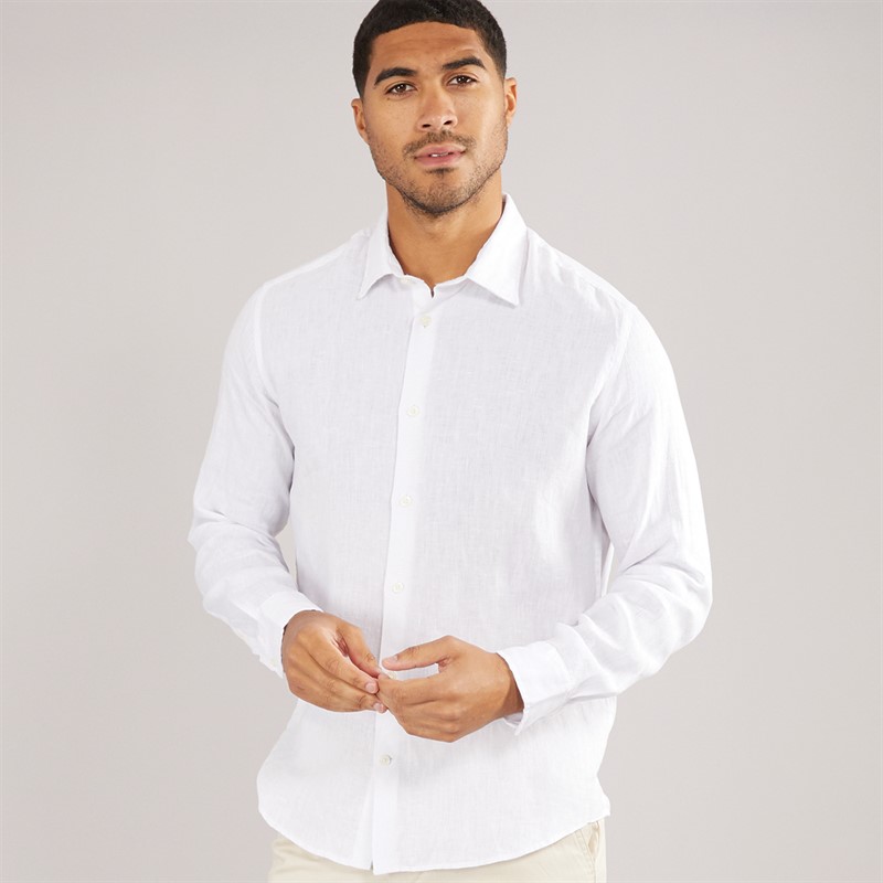 Selected Homme Mens Regkylian-Linen Classic Long Sleeve Shirt White