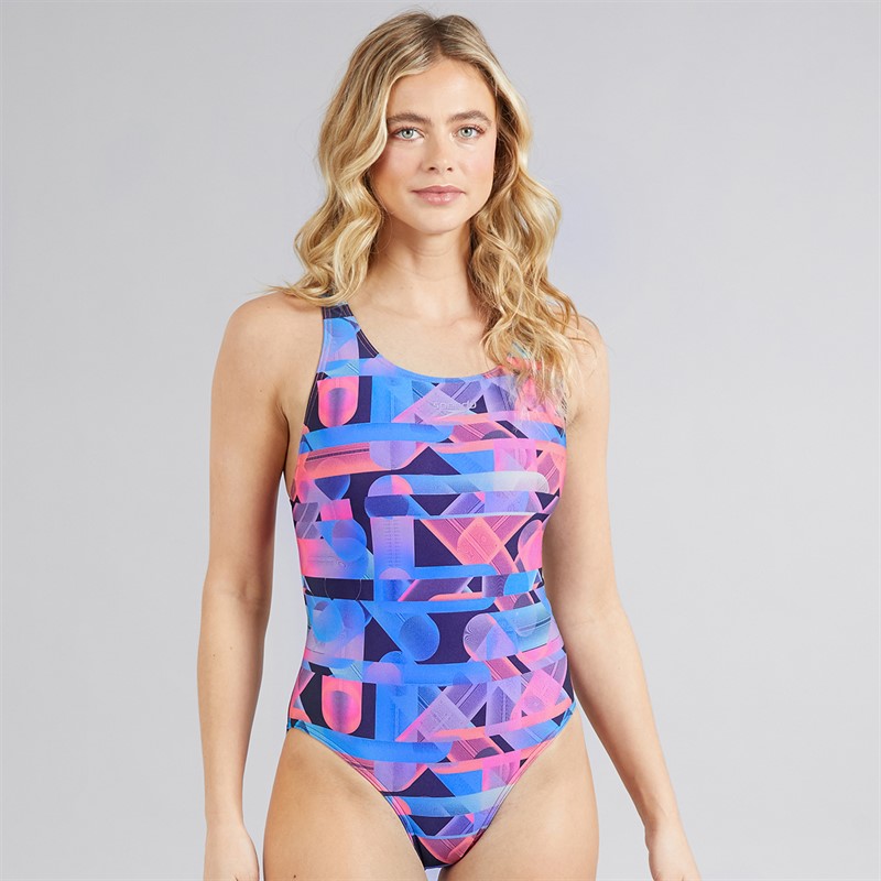Speedo Womens Alover Digital Powerback Swimsuit True Navy/Siren Red