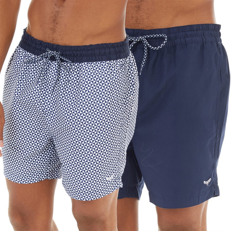 THREADBARE Mens Two Pack Kite Swim Shorts Navy/Geo