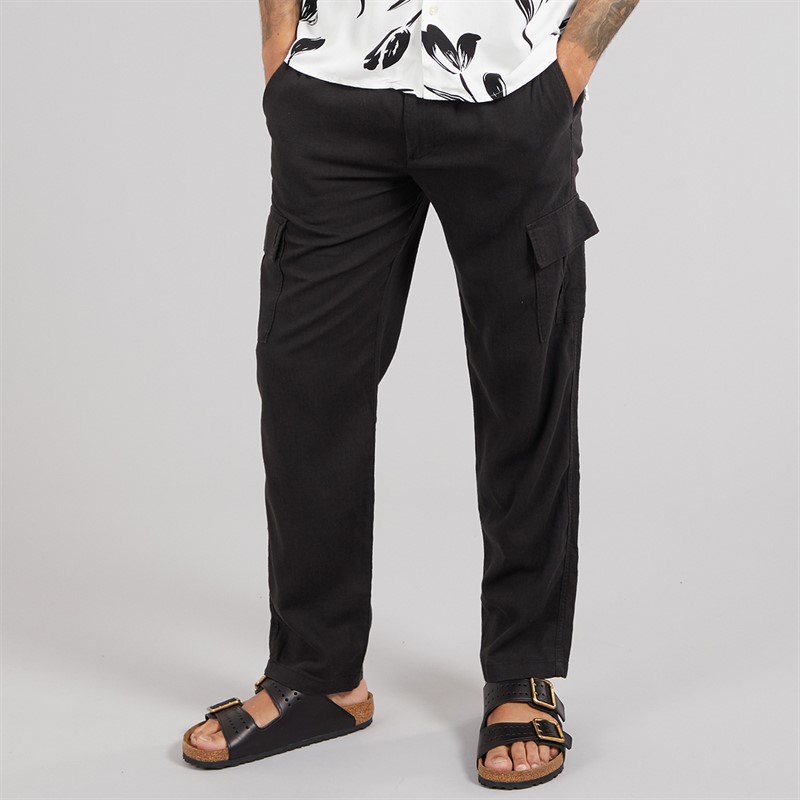 THREADBARE Mens Ramsay Linen Trousers Black