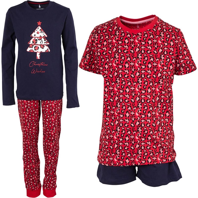 Threadgirls Girls Snow Two Pack Christmas Lounge Set Navy/Red