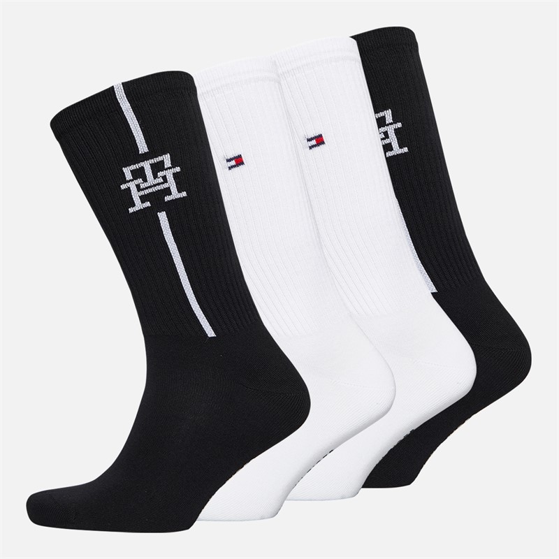Tommy Hilfiger Mens Four Pack Monogram Socks Black/White