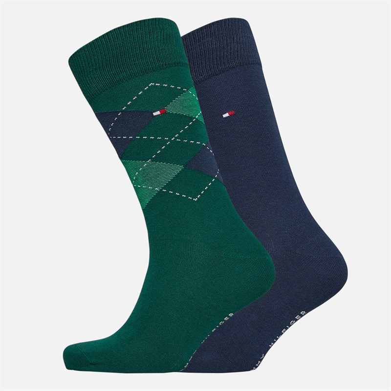 Tommy Hilfiger Mens Two Pack Check Socks Dark Green