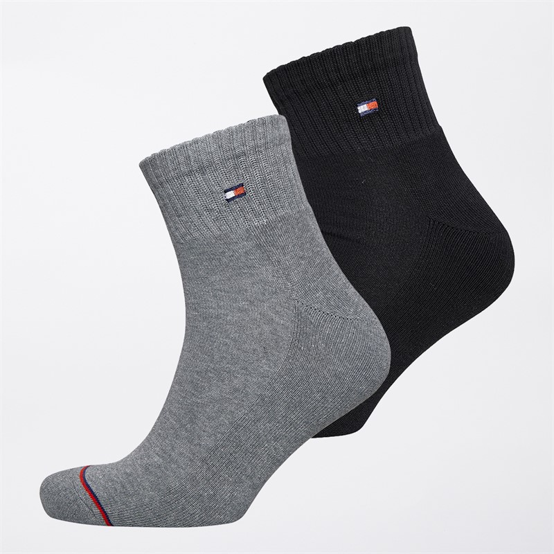Tommy Hilfiger Mens Two Pack Quarter Socks Mid Grey/Black Mid Grey / Black