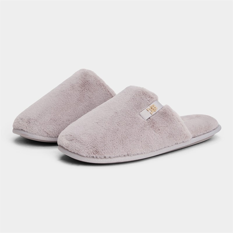 Tommy Hilfiger Womens Faux Fur Mule Slippers Lilac Dusk