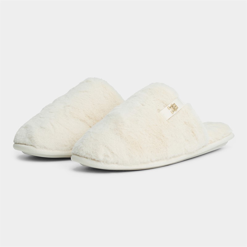 Tommy Hilfiger Womens Faux Fur Mule Slippers Ancient White