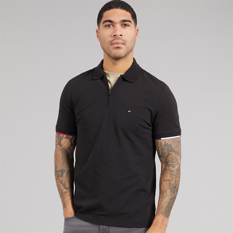 Tommy Hilfiger Mens Zip Up Polo Shirt Black