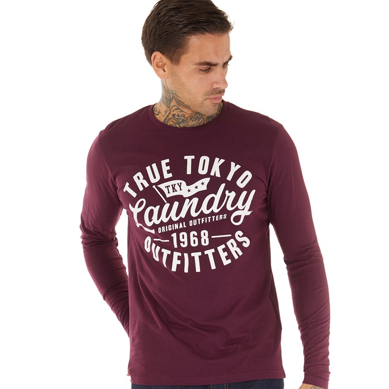 Tokyo Laundry Mens Revo Long Sleeve Top Burgundy