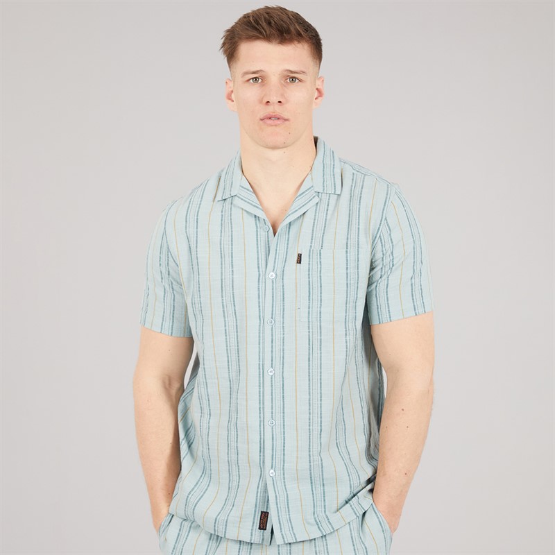 Tokyo Laundry Mens Zula Stripe Short Sleeve Shirt Blue Green Stripe