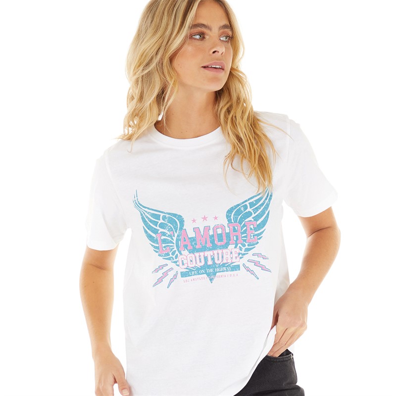 • L'amore Couture short sleeve t-shirt. Our model is 5'7'' and wears a size 10.