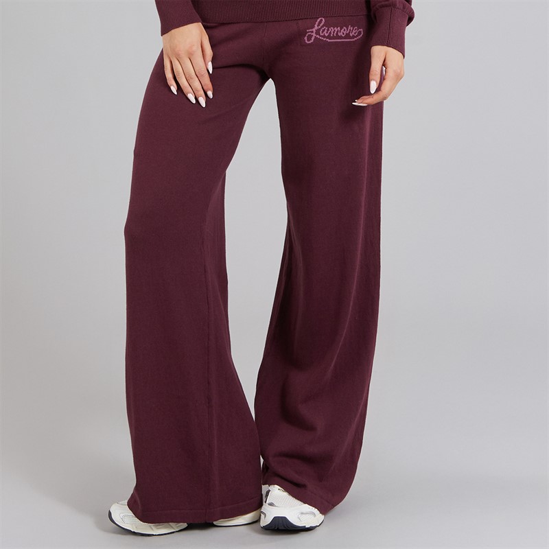 L'amore Couture Womens Santa Barbara Wide Leg Knitted Joggers Burgundy