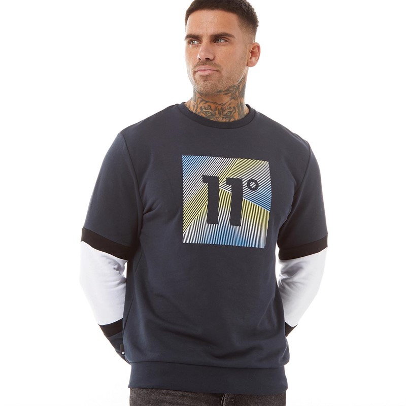 11 Degrees Mens 3D Gradient Sweatshirt Navy/White/Black