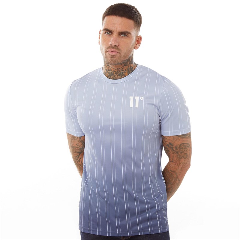 11 Degrees Mens Fade Stripe T-Shirt Blue