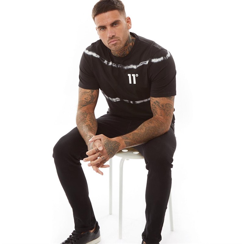 11 Degrees Mens Tie Dye T-Shirt Black/White