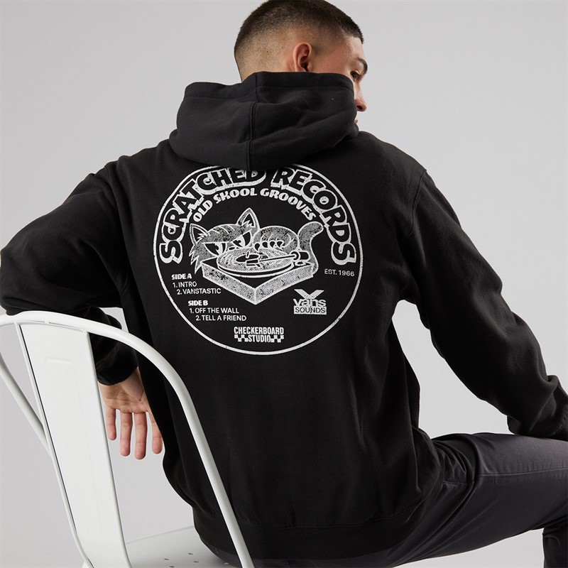 Vans Mens Scratched Records Graphic Back Hoodie Black
