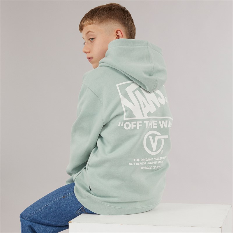 Vans Junior Boys Stockpile Graphic Back Hoodie Gray Olive