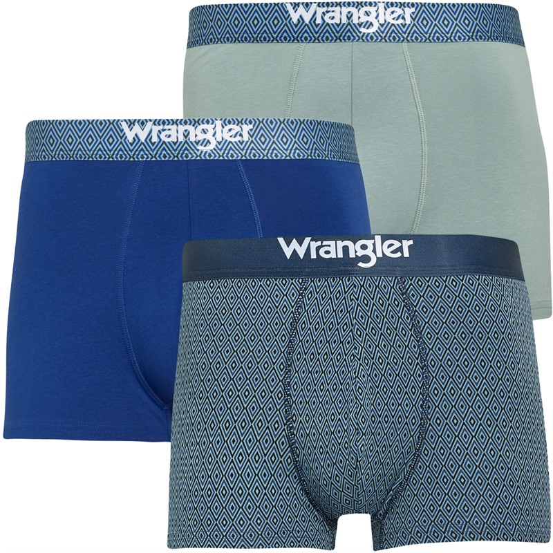 Wrangler Mens Joor Three Pack Trunks Silver Blue/Print/Sodalite Blue