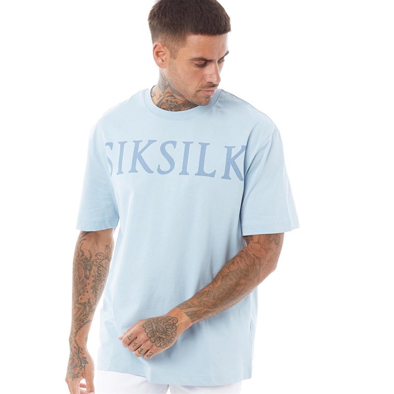 SikSilk Mens Oversized Logo T-Shirt Blue