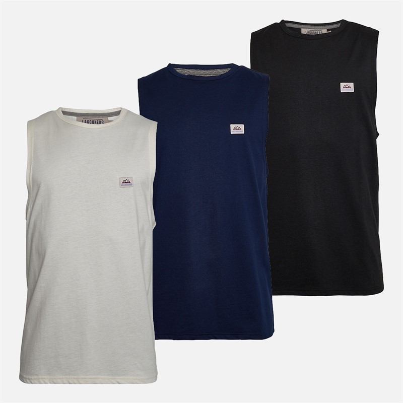 Lagooners Mens Ethan Three Pack Vests Black/Navy/Ecru
