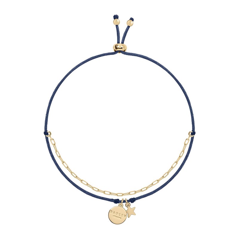- RADLEY cord and gold bracelet featuring a yellow-gold plated medallion with the brand name engraved alongside a star charm.